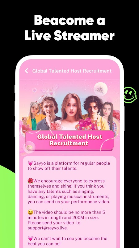 क्या आप केंद्र स्तर पर आने के लिए तैयार हैं? साय्यो वर्तमान में विभिन्न प्रकार की प्रतिभाओं की भर्ती कर रहा है। यदि आप दर्शकों को लुभाने और अपना नाम बनाने का शौक रखते हैं, तो अभी [email protected] पर हमसे संपर्क करें।