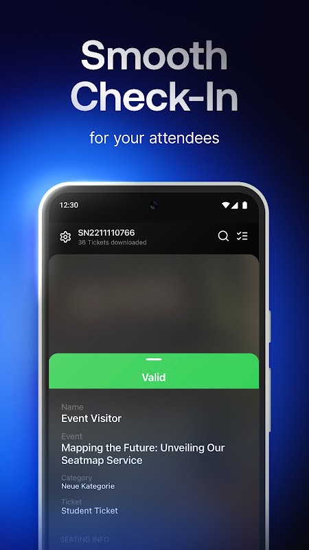 • क्यूआर कोड या बारकोड के माध्यम से टिकट स्कैन और मान्य करें
