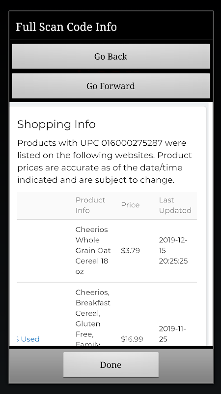 विभिन्न प्रकार के उत्पादों को स्कैन करें। वेब से पूर्ण उत्पाद विवरण प्राप्त करता है।