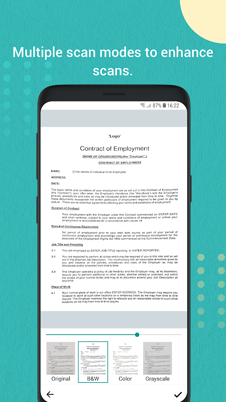 - Four modes you can choose to enhance the scans—Original, Black&White, Color, Grayscale. Meanwhile you can adjust the brightness.
