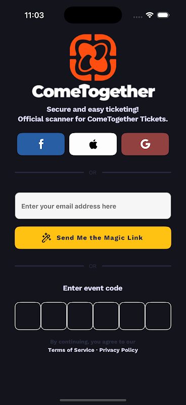 ComeTogether के उपकरणों के माध्यम से बनाए गए टिकटों के लिए स्कैनर।