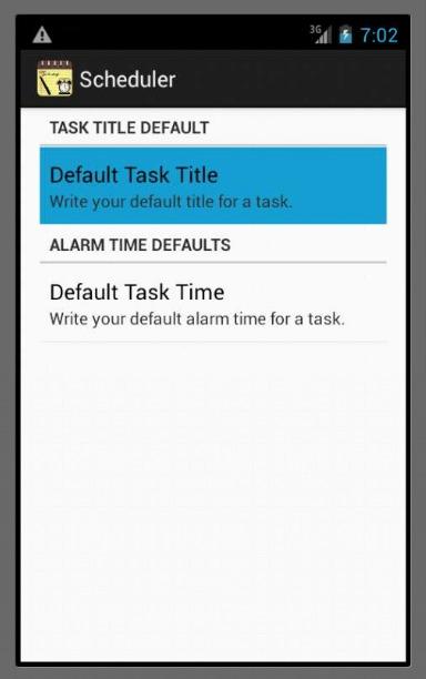 समयबद्धक एक सरल अनुप्रयोग है जो उपयोगकर्ताओं को कार्यों की एक सूची बनाने की अनुमति देता है। प्रत्येक कार्य में एक अलार्म तिथि और समय होता है जब उपयोगकर्ता को कार्य के बारे में सूचित किया जाएगा। अधिसूचना स्थिति बार और अलार्म ध्वनि के माध्यम से है। कार्यों को इनपुट करना, संपादित करना और हटाना आसान है। अपने मेनू बटन को पुश करें, नए कार्य जोड़ें या सेटिंग्स समायोजित करें। जोड़ने और संपादन के लिए लेआउट सरल है और इसमें केवल कुछ फ़ील्ड हैं: शीर्षक, पाठ, अलार्म दिनांक, अलार्म समय।