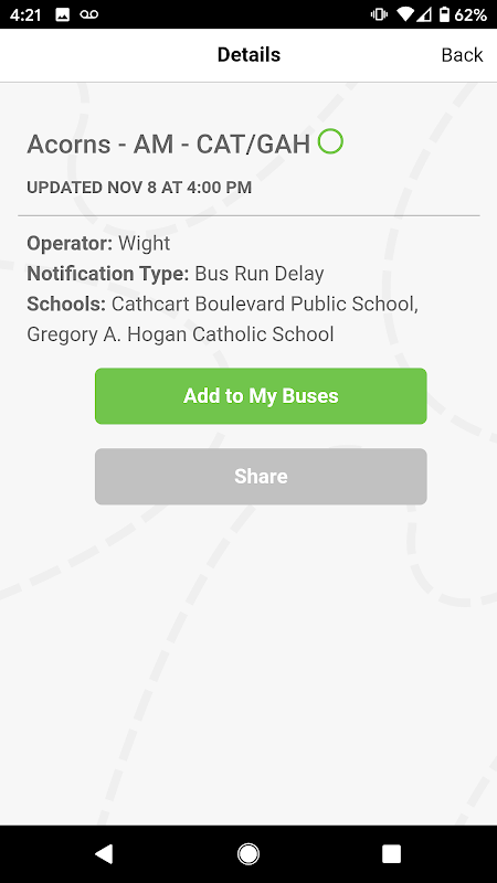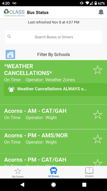The SchoolBusInfo - Bus Status app displays up to date bus service information for schools operated by the St. Clair Catholic and Lambton-Kent District School Boards. The SchoolBusInfo - Bus Status app uses push notifications to keep parents/guardians, students, and other stakeholders in Sarnia-Lambton & Chatham-Kent updated. Only bus delays of 10 minutes or greater will be posted. Users can subscribe to the status of any or all morning / afternoon buses. For further information including your bus symbol(s) please visit www.MySBI.ca