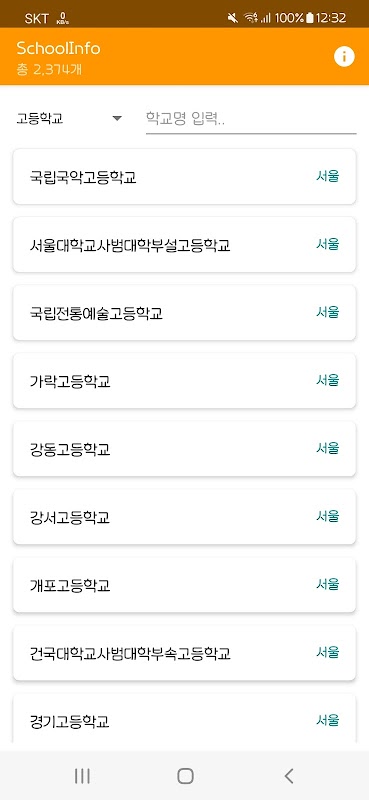 간단한 조작으로 원하는 학교를 검색할 수 있습니다.