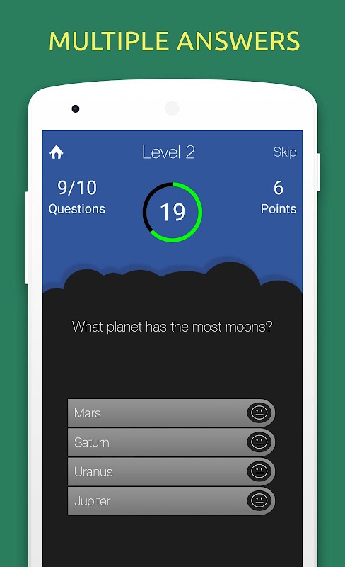 हर बार खेलते समय प्रश्न और उत्तर बेतरतीब ढंग से बदल दिए जाते हैं। यदि आप उत्तर नहीं जानते हैं, तो आप एक प्रश्न छोड़ सकते हैं। अपने दोस्तों के साथ एक पर एक मल्टीप्लेयर खेलें!