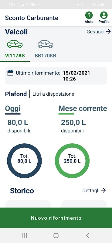 ऐतिहासिक ईंधन की कीमतों, सहायता सेवा के संपर्कों और लोम्बार्डी क्षेत्र के नोटिस को देखना भी संभव है।