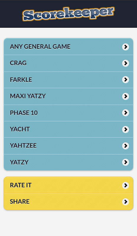 Scorekeeper एप्लिकेशन कई लोकप्रिय खेल के लिए मल्टीप्लेयर स्कोर रखने प्रदान करता है। इतना ही नहीं यह स्कोर का ट्रैक रखने के लिए प्रदान करता है, यह भी इस तरह के Farkle, यॉट, Yahtzee, डाइस, मैक्सी डाइस, चरण 10, ग्रीवा के रूप में कई लोकप्रिय पासों का खेल के लिए स्कोर गणना करता है।