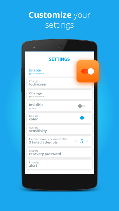 ⇨ इशारों को अनलॉक और अपने सिस्टम लॉक स्क्रीन को चालू / बंद करने की अनुमति दें।