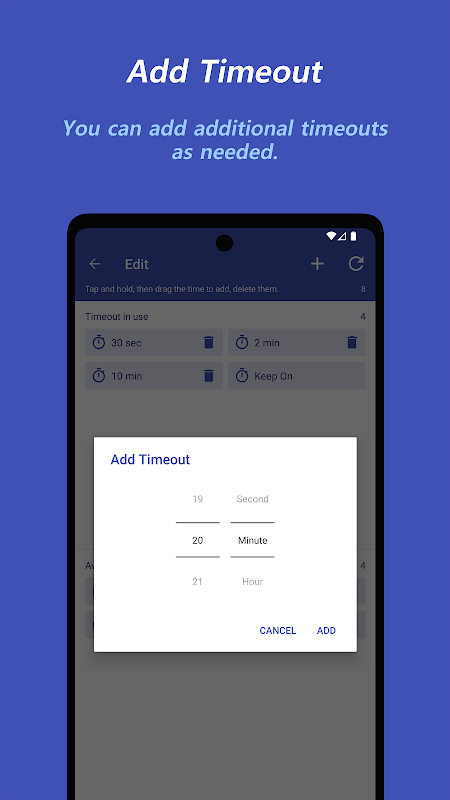 ● कस्टम स्क्रीन ऑफ समय जोड़ें और हटाएं