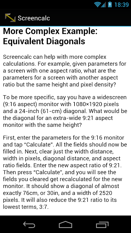 चौड़ाई, ऊंचाई, विकर्ण, पिक्सेल घनत्व आदि: डिस्प्ले स्क्रीन मापदंडों की गणना करता है
