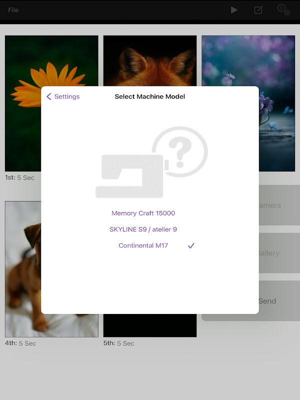 स्क्रीन सेवर टूल आपको अपने Android डिवाइस और वायरलेस LAN का उपयोग करके अपनी Janome सिलाई मशीन के लिए स्क्रीन सेवर इमेज सेट करने की सुविधा देता है। आपके डिवाइस पर ली गई तस्वीरों और सेव की गई इमेज को आपकी सिलाई मशीन के लिए स्क्रीन सेवर के रूप में इस्तेमाल किया जा सकता है और आप अपने खुद के ओरिजिनल स्क्रीन सेवर का आनंद ले सकते हैं!