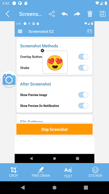 - Take a screenshot by touching Overlay Icon / Shaking your phone