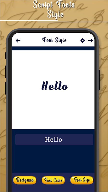 स्क्रिप्ट फ़ॉन्ट शैली केवल स्क्रिप्ट फ़ॉन्ट शैली बीटी ऐप के साथ ऐप भी विकल्प को अद्भुत फ़ॉन्ट शैलियों के साथ अपनी पसंद को निजीकृत करने की अनुमति देता है। किसी भी उपयोगकर्ता द्वारा उपयोग करना आसान और सरल है, बस संग्रह से अपनी पसंद बीजी का चयन करें और अपने स्वयं के शब्दों के साथ पाठ शैलियों को लागू करें और इसे बचाएं। ऐप उपयोगकर्ताओं को अद्भुत फ़ॉन्ट शैलियों को बदलने और पाठ के आकार को बदलने की भी अनुमति देता है। एप्लिकेशन को अद्भुत फ़ॉन्ट शैलियों में अपनी इच्छा पाठ साझा करें।