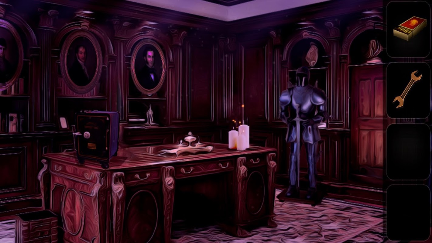प्वाइंट और क्लिक करें भूत पहेली। एक भूतिया हवेली के आतंक का अनुभव करें।