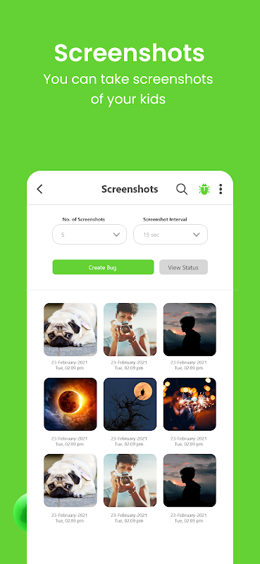 स्क्रीनशॉट: बच्चे की फ़ोन गतिविधि के समय-समय पर स्क्रीनशॉट देखें।
