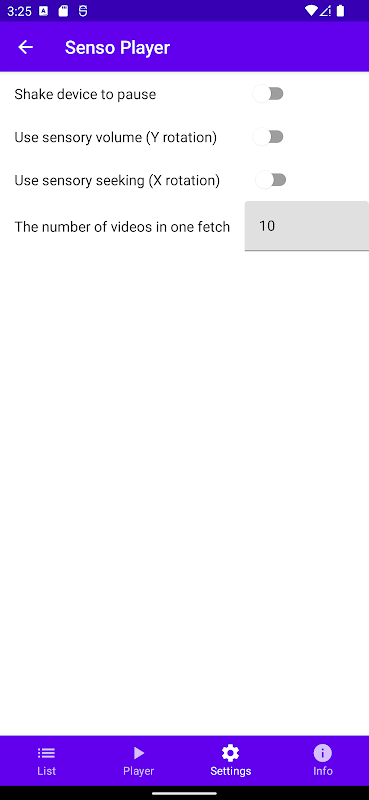 एक्सेलेरोमीटर और जायरोस्कोप द्वारा नियंत्रित ऑनलाइन वीडियो प्लेयर के साथ डेमो ऐप