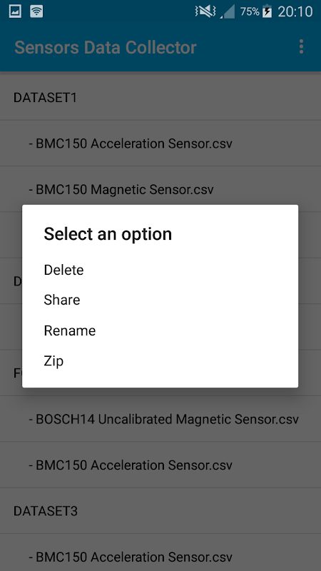 - Files corresponding to the collected datasets can be renamed, zipped, shared or deleted.
