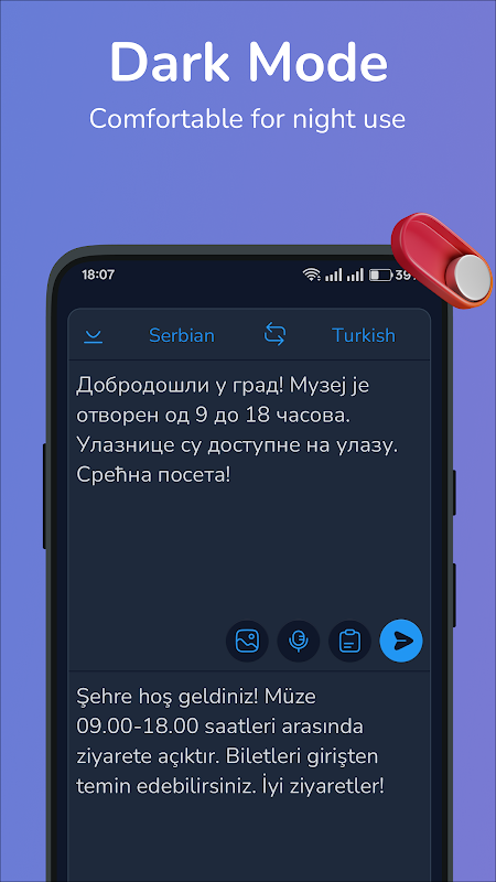- प्राकृतिक वाक् पहचान: बस स्वाभाविक रूप से बोलें और तुर्की या सर्बियाई में सही अनुवाद प्राप्त करें