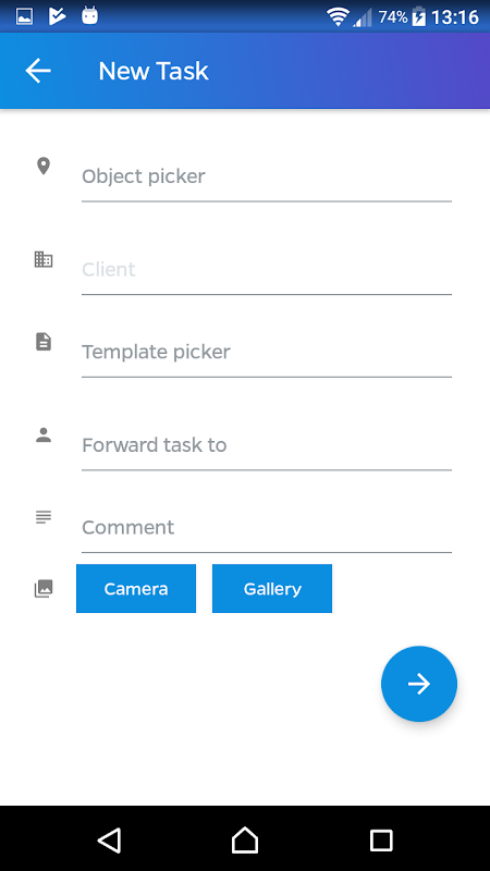 - टास्क टेम्पलेट्स मूल पाठ, काउंटर, रेडियो, चेकबॉक्स, हस्ताक्षर, चित्र आदानों होते हैं।