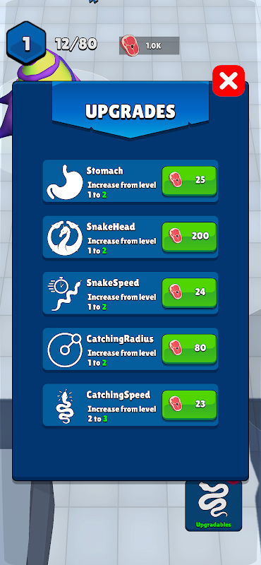 रणनीतिक उन्नयन: होमबेस पर एक समृद्ध अपग्रेड सिस्टम में गहराई से गोता लगाएँ. अपने सांप की गति, पेट की क्षमता, स्वास्थ्य और बहुत कुछ बढ़ाएं. अपनी शिकारी क्षमता बढ़ाने के लिए अतिरिक्त सांप के सिर का परिचय दें या अपने शरीर को लंबा करें.