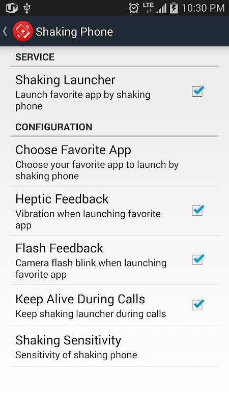 ● Set the sensitivity of shaking suitable for you phone. The higher, the easier.