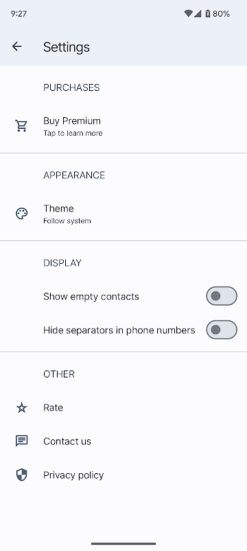 संपर्कों को टेक्स्ट, वीसीएफ या सीएसवी के रूप में निर्यात करें। उन्हें किसी भी ऐप पर भेजें या बैकअप बनाएं