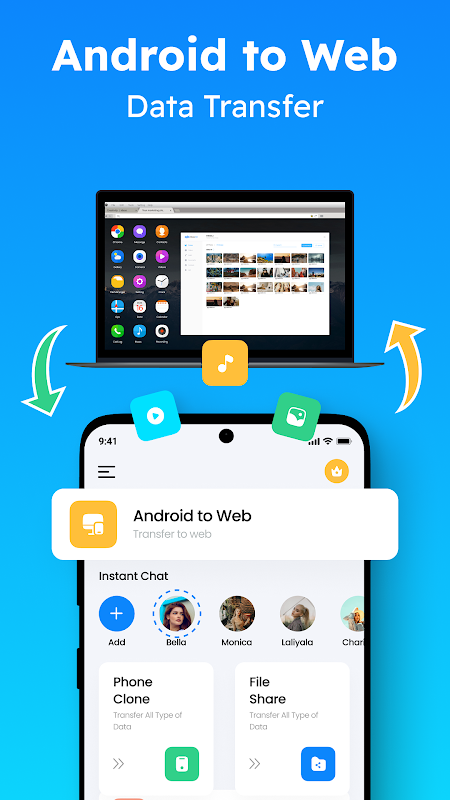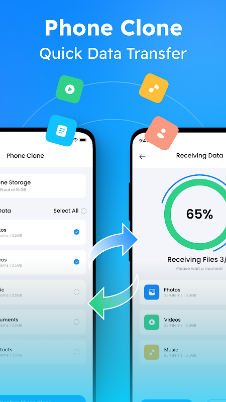 Clone your old phone to a new device with one tap. Transfer everything—contacts, apps, photos, videos, and more.