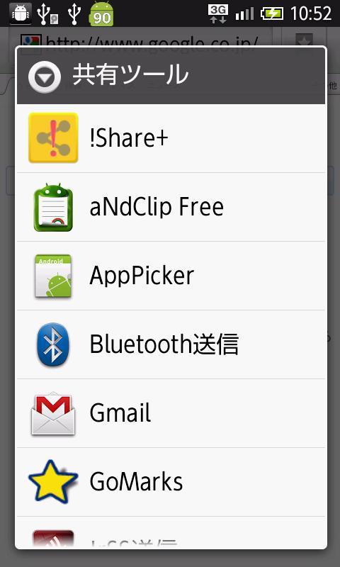 "!ShareFree"では「共有」メニューに2つしかアプリを登録することができません。