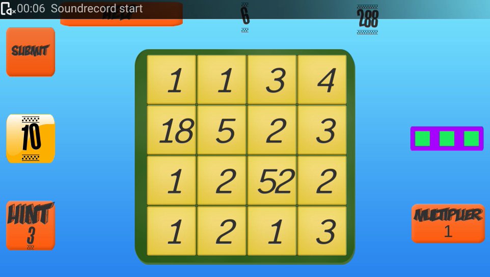 Lots of power ups to use to increase the score (Its not only addition skills ,strategy also requires to score big).