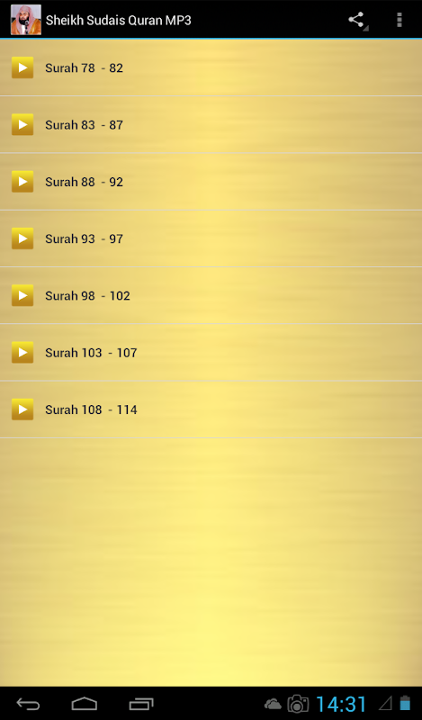 इस एप्लिकेशन को आप अब्दुल रहमान अल Sudais द्वारा Juz अम्मा का सस्वर पाठ, पवित्र कुरान से सुनने की सुविधा देता। कोई डाउनलोड की आवश्यकता है या स्ट्रीमिंग सिर्फ app स्थापित करें और सूरा का चयन सुनने के लिए।