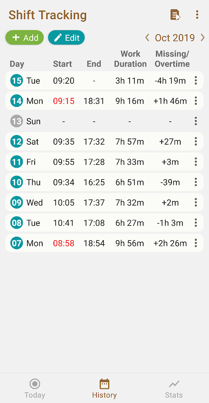 यह आपके कार्यस्थल और/या आपके कार्यस्थल के स्थान में वायरलेस नेटवर्क द्वारा स्वचालित रूप से आपके प्रारंभ और समाप्ति घंटे बचाता है। आप मैन्युअल रूप से घंटे बदल/जोड़ सकते हैं।