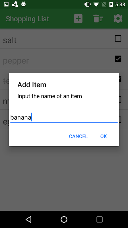 आइटम आप खरीदना चाहते का नाम जोड़ें। आप अपने शॉपिंग कार्ट में आइटम डाल के बाद, आइटम की जाँच करें और सूची से हटा दें। स्क्रीन चेक किए गए आइटम को हटाने के लिए की चोटी पर कचरा पेटी बटन टैप करें।