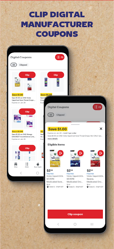 • डिजिटल निर्माता कूपन: डिजिटल कूपन क्लिप करें, और इन-लेन, या ऑनलाइन पिकअप या डिलीवरी ऑर्डर के माध्यम से भी भुनाएं!