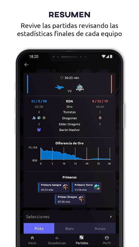 विभिन्न पेशेवर लीग ऑफ लीजेंड्स के खेलों का लाइव कवरेज आंकड़ों के साथ लीग करता है जो आपको गेम को समझने में मदद करेगा।