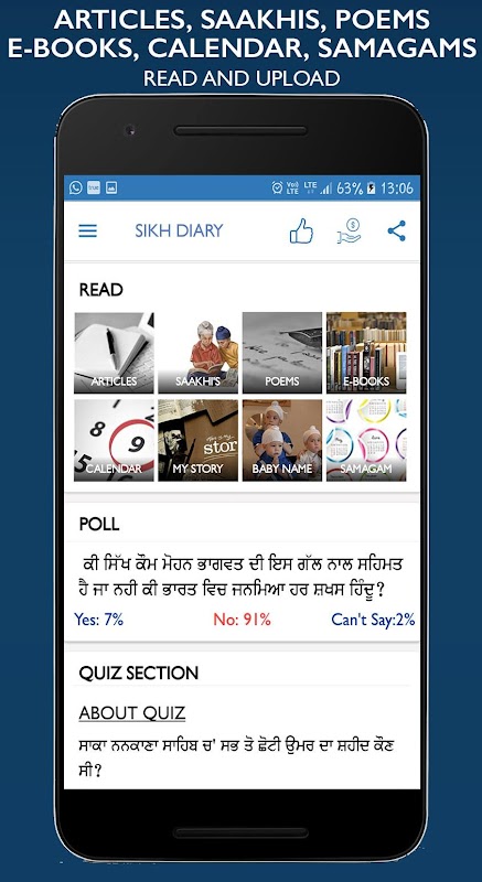 इस ऐप्लिकेशन में हम विशेषता यह है कि उपयोगकर्ता अपने प्रोफाइल बनाने और सिख धर्म से संबंधित सामग्री को अपलोड करने और दुनिया के बाकी जो व्यवस्थापक द्वारा सत्यापित है साथ साझा कर सकते हैं।