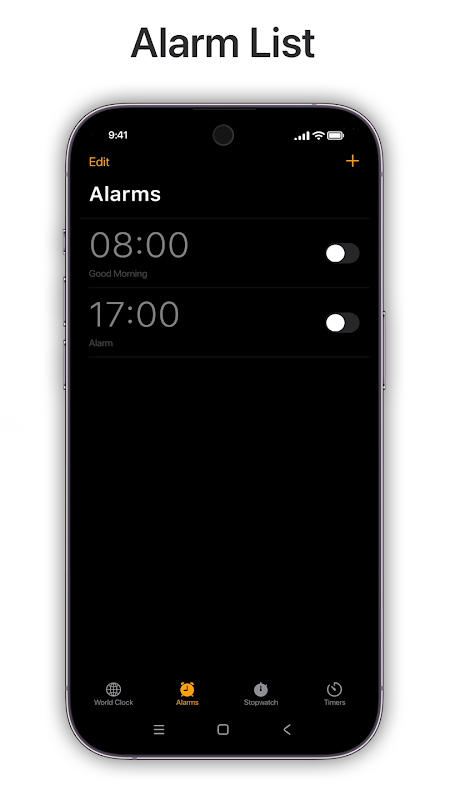 एक साधारण टैप से तुरंत अलार्म सेट करें, सक्षम करें और अक्षम करें। सभी अलार्म उसी क्रम में प्रदर्शित किए जाते हैं जिस क्रम में वे बंद होंगे, ताकि आप एक नज़र में आसानी से अपना शेड्यूल प्रबंधित कर सकें। स्वच्छ, उपयोगकर्ता-अनुकूल डिज़ाइन आपके अलार्म को प्रबंधित करना पहले से कहीं अधिक आसान बना देता है।