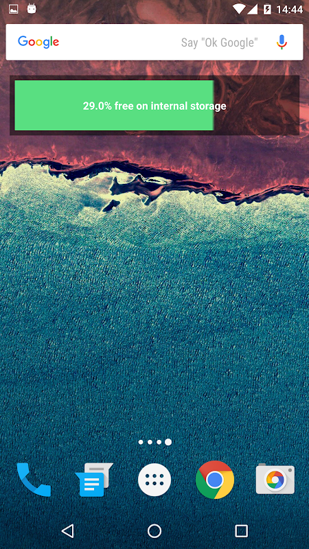 इस विजेट आप मूल रूप से इस्तेमाल अंतरिक्ष के बारे में विस्तृत जानकारी के साथ अपने डिवाइस और पाठ संकेत पर उपलब्ध भंडार पर इस्तेमाल अंतरिक्ष के एक साधारण ग्राफिक प्रतिनिधित्व दिखाता है। उपयोग करने के लिए यह बस विजेट मेनू का उपयोग कर अपने घर स्क्रीन को जोड़ने। ध्यान रखें कि इस विजेट है कि आप लांचर से लॉन्च कर सकता है इसके साथ जुड़े किसी भी स्क्रीन नहीं है।