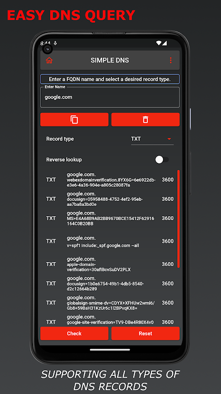 सरल डीएनएस एक उपयोग में आसान उपकरण है जिसके साथ डीएनएस प्रश्नों को किया जा सकता है।