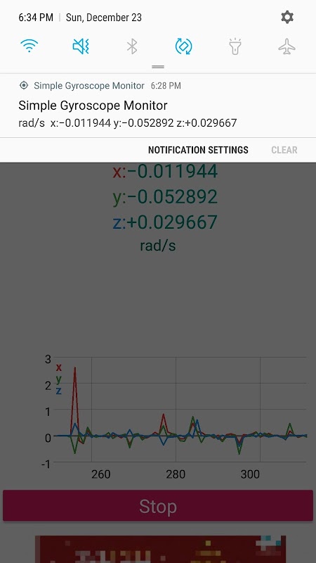 आप अधिसूचना दराज में रोटेशन की दर भी देख सकते हैं।