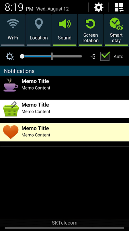 ★ अधिसूचना (स्थिति) बार ज्ञापन। इस एप्लिकेशन को स्थिति पट्टी पर साधारण ज्ञापन प्रदर्शित करते हैं।