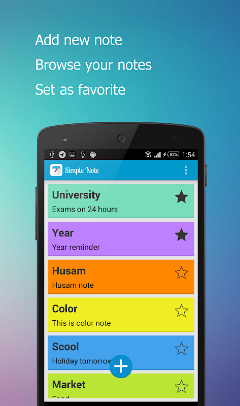 With Simple Color Note you can color your note, it gives you quick and simple notepad choices, Taking notes with Simple note app. Notepad is easier than any other notepad or memo pad app.