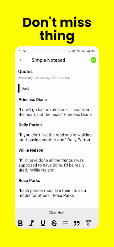 सिंपल नोटपैड ऐप में हमने आपको कई अतिरिक्त फीचर्स दिए हैं, जिनकी मदद से आप आसानी से टू डू लिस्ट, टाइम टेबल, मॉर्निंग शेड्यूल, शॉपिंग लिस्ट और उसमें कई तरह की लिस्ट बना सकते हैं। उसी अन्य ऐप में आपको इन सभी सुविधाओं का उपयोग करने के लिए पैसे देने पड़ते हैं, लेकिन हमारे साधारण नोटपैड ऐप में, आपको एक पैसा भी नहीं देना पड़ता है, इसमें सब कुछ मुफ़्त है, इसलिए यह ऐप अन्य सभी ऐप से अलग है।