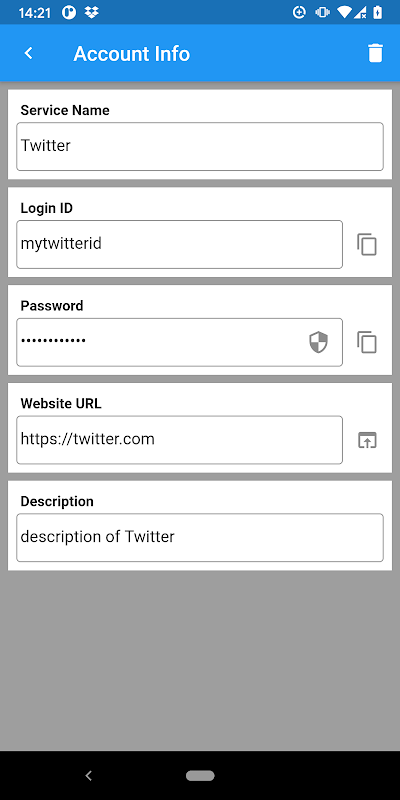 The ID and password can be copied to the clipboard with a single tap, and the password can be switched between hidden and plain text. If you register the URL of the site, you can access it with one tap.