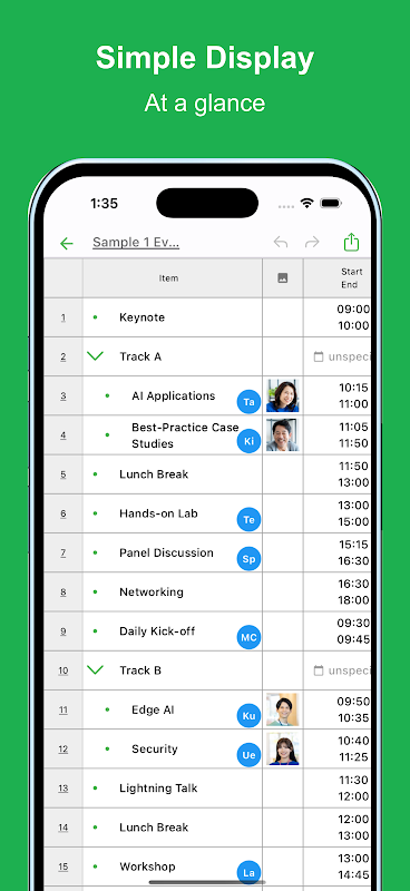 यह टाइमलाइन ऐप आपके स्मार्टफ़ोन या टैबलेट पर सीधे एक-दिवसीय या बहु-दिवसीय शेड्यूल के लिए टाइमलाइन बनाना आसान बनाता है।