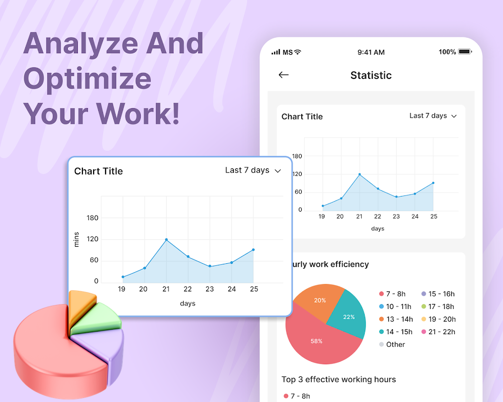 ऐप केवल कार्यों को ट्रैक नहीं करता है - यह आपके प्रदर्शन को ट्रैक करता है। आपके पोमोडोरो सत्रों के आधार पर स्मार्ट अंतर्दृष्टि के साथ, आप अपने सबसे अधिक उत्पादक घंटों की खोज करेंगे और अधिकतम दक्षता के लिए अपने शेड्यूल को अनुकूलित करने के लिए सुझाव प्राप्त करेंगे।