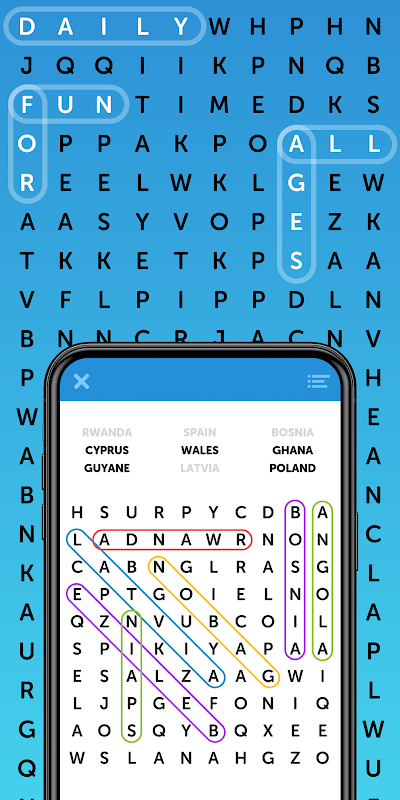 सरल शब्द खोज में आपका स्वागत है, एक ऐसा खेल जिसका मतलब वही है जो वह कहता है! इस क्लासिक मुफ़्त शब्द खेल का उद्देश्य वही है जो आपने बचपन में सीखा था। आपको एक शब्द बैंक दिया जाता है जिसमें ऐसे शब्द होते हैं जो अस्त-व्यस्त अक्षरों के ग्रिड के अंदर छिपे होते हैं। सभी शब्दों को खोजना और ढूँढ़ना तथा प्रत्येक शब्द पहेली को हल करने के लिए उन्हें हाइलाइट करना आपका काम है। एक बार जब आप कोई शब्द खोज लेते हैं और उसे पा लेते हैं, तो अपनी उँगली से अक्षरों को सामने, पीछे या ऊपर-नीचे करके हाइलाइट करें! पहेली में सूची से शब्दों को तब तक ढूँढ़ते रहें जब तक कि आप उन्हें सभी न पा लें।