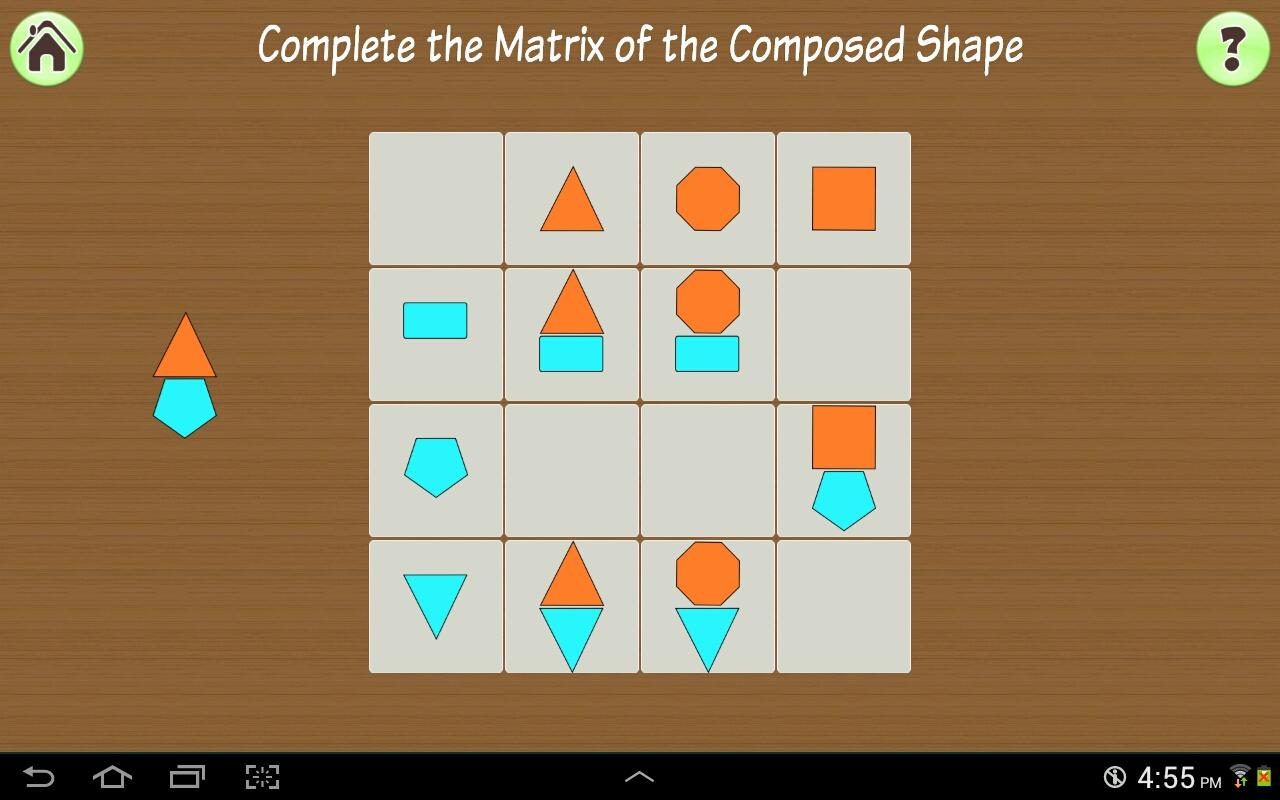 4. Build. A matrix of different shapes is provided, and also a composed shape, kids have to put each shape in the right grid, reinforces compose shape concepts