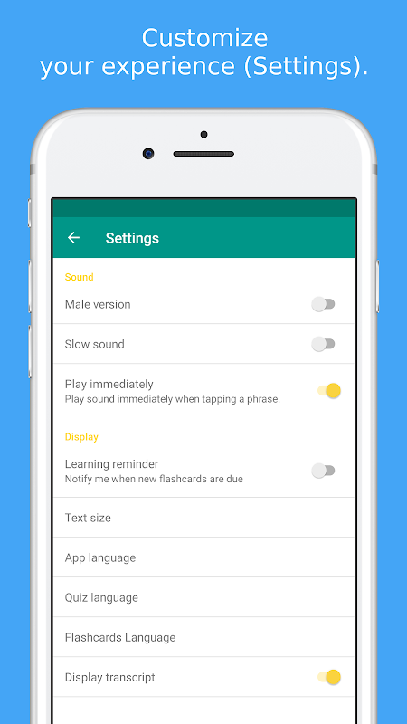 ✓ प्रश्नोत्तरी और फ्लैशकार्ड सेटिंग को समायोजित करें यूक्रेनी → हिंदी, हिंदी → यूक्रेनी