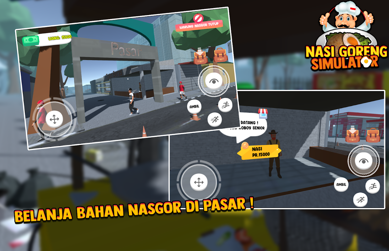 इस गेम में आप नसी गोरेंग को बेचने वाले ममंग पेर्ली के रूप में एक सिम्युलेटर की भूमिका निभाएंगे, इस गेम में आप खाना पकाने, तलने, सामग्री खरीदने और तले हुए चावल खरीदने वाले ग्राहकों की सेवा करने का अनुकरण करेंगे। इस फ्राइड राइस सिम्युलेटर गेम में आप फ्राइड राइस कॉम्प्लेक्स मैप के चारों ओर जा सकते हैं, बाजार में खाना पकाने की आपूर्ति खरीद सकते हैं, भूत दुश्मनों से लड़ सकते हैं, ईस्टरेग ढूंढ सकते हैं, ठगों और शातिर जानवरों से लड़ सकते हैं, और इंसानों को टोकटोक सेलेब अजय माबर
