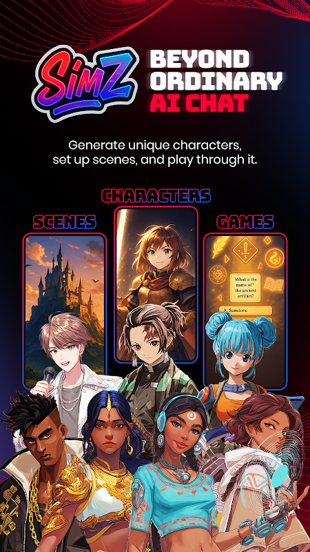 अपना स्वयं का AI चरित्र बनाएं और SimZ ऐप पर रोलप्ले चैट का आनंद लें।